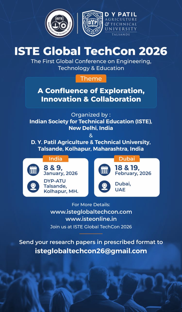 The Indian Society for Technical Education (ISTE) proudly presents ISTE Global TechCon 2026, a premier international platform bringing together academicians, researchers, industry professionals, and students to exchange knowledge, foster innovation, and explore the future of engineering and technical education.